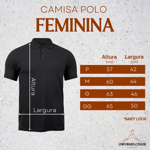 | Quadril | 86 | 90 | 94 | 98 | 102 | 106 | 110 | 114 | 118 | 122 | 126 | 130 |